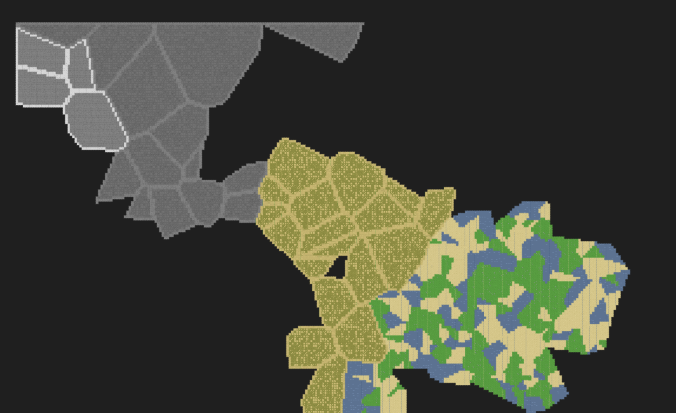 - Terrain: Using the biome, create unique terrain for each cell locally.